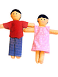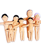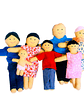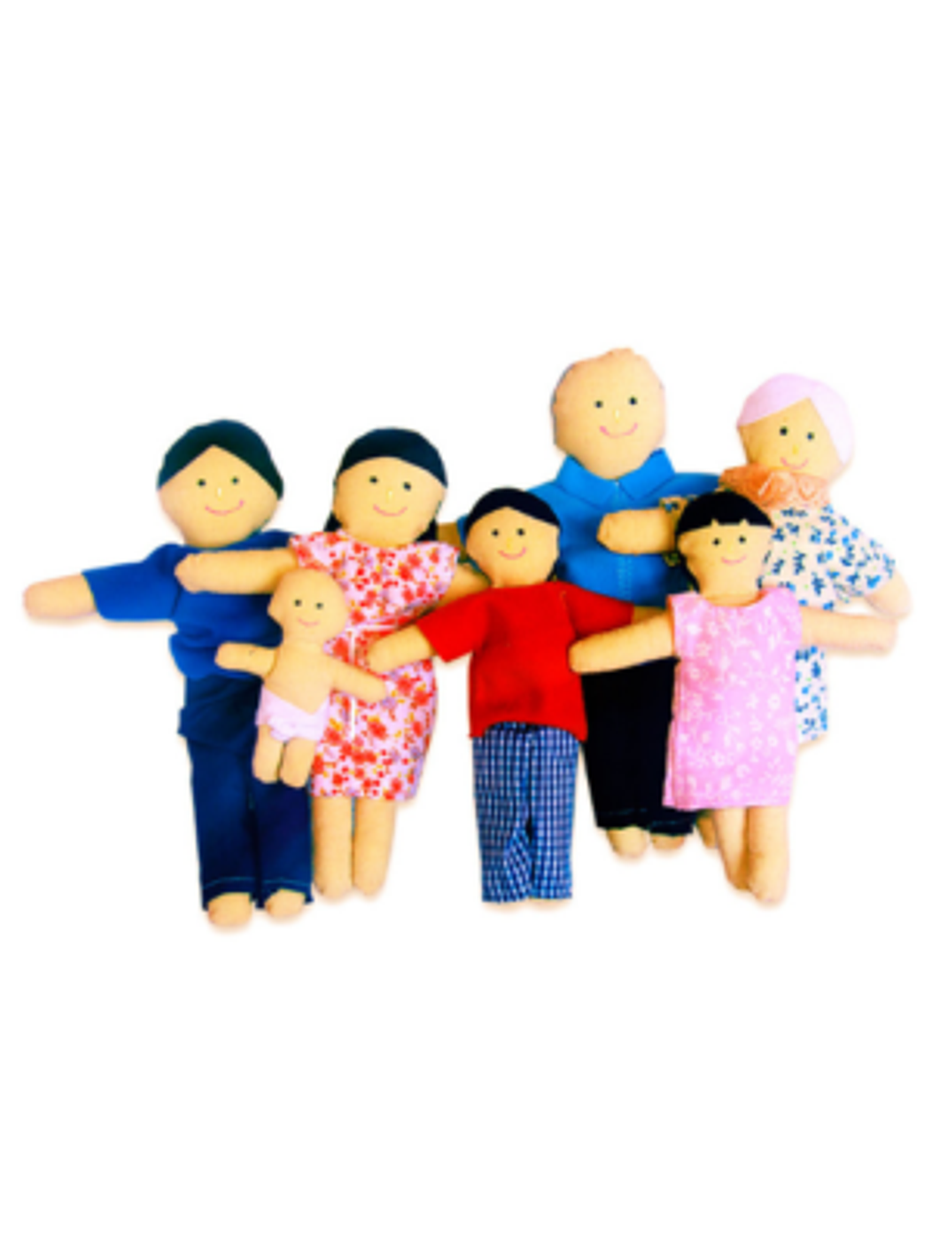 El tamaño de los muñecos es de 29-26 cms padres y abuelos, hijos 20cms y 10cms el bebé. Poseen medidas adecuadas para ser usadas en casas de muñecas. Manipulando los muñecos, el niño puede proyectar la visión que tiene de su familia, y su relación respecto a los roles, género y sexualidad. Es una herramienta apta para abordar amplias temáticas familiares, dinámicas y roles. Así mismo se pueden ocupar los muñecos para, tratar y reparar las problemáticas identificadas por el terapeuta y fortalecer roles. Herramienta ideal para terapeutas infantiles o familiares.