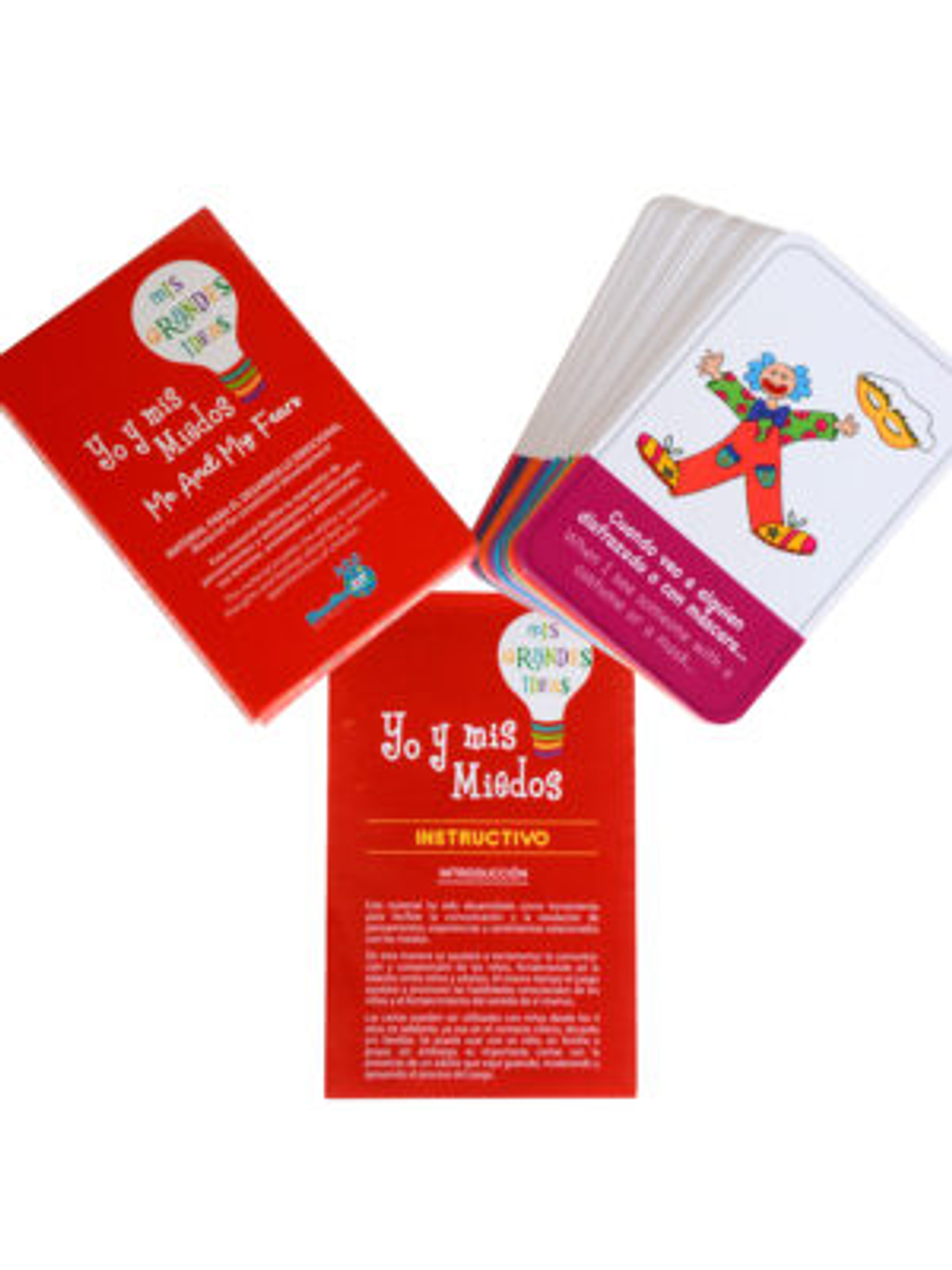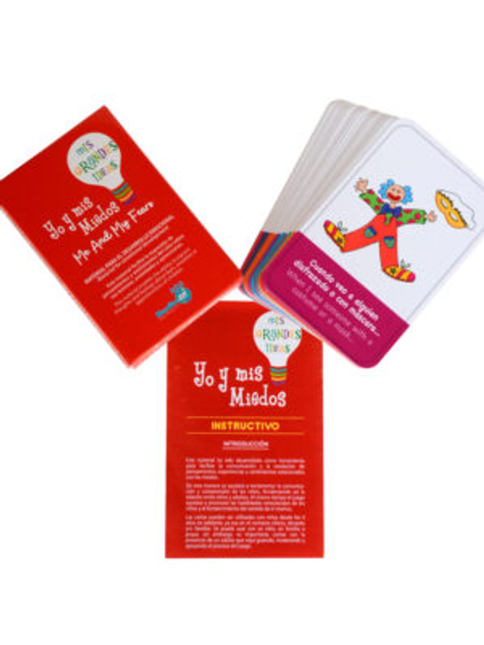 Un novedoso juego de cartas de completación de oraciones que facilita la expresión de pensamientos y sentimientos del niño sobre sus temores, ansiedades y aprensiones. Herramienta ideal para padres y profesionales que trabajan con menores. El juego contiene 36 cartas (en español e inglés) que abarcan variadas temáticas relacionadas con los miedos, incluyendo ansiedad, sentimiento de inseguridad, timidez y preocupaciones. A través del juego el adulto podrá facilitar la identificación y comprensión de los miedos que afectan al niño, y comenzar a intervenir en su mejor manejo y resolución.